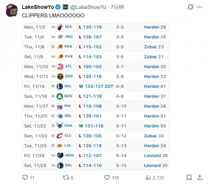 湖人自媒体嘲笑快船战绩:LMAO笑死我啦