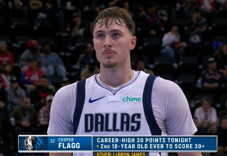 未来可期!弗拉格是历史上第二个18岁得分30+的球员 第一是詹姆斯